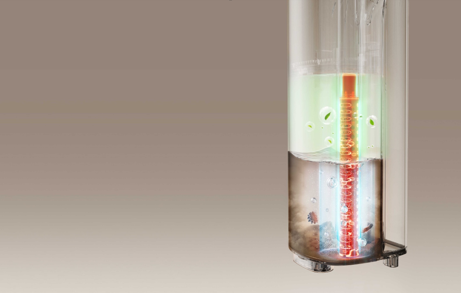 "ניקוי עצמי ב-°C100, חיטוי תרמי במים אלקטרוליטיים, וסטריליזציה UV-C (אולטרה-סגול)"