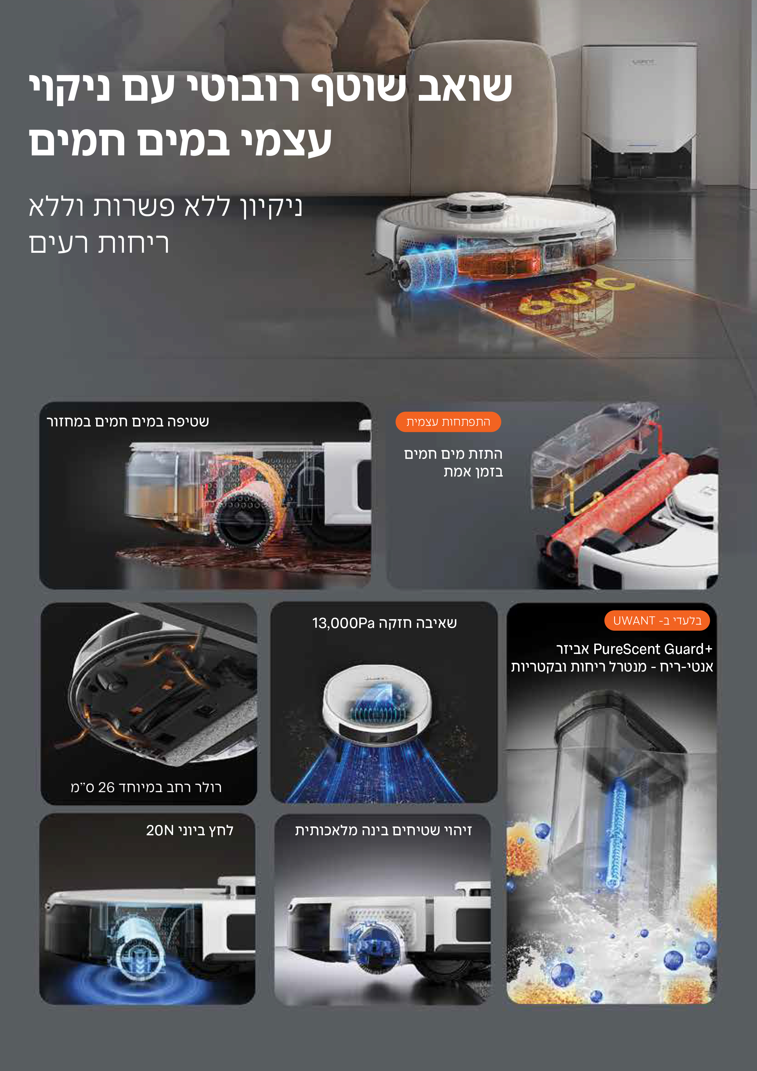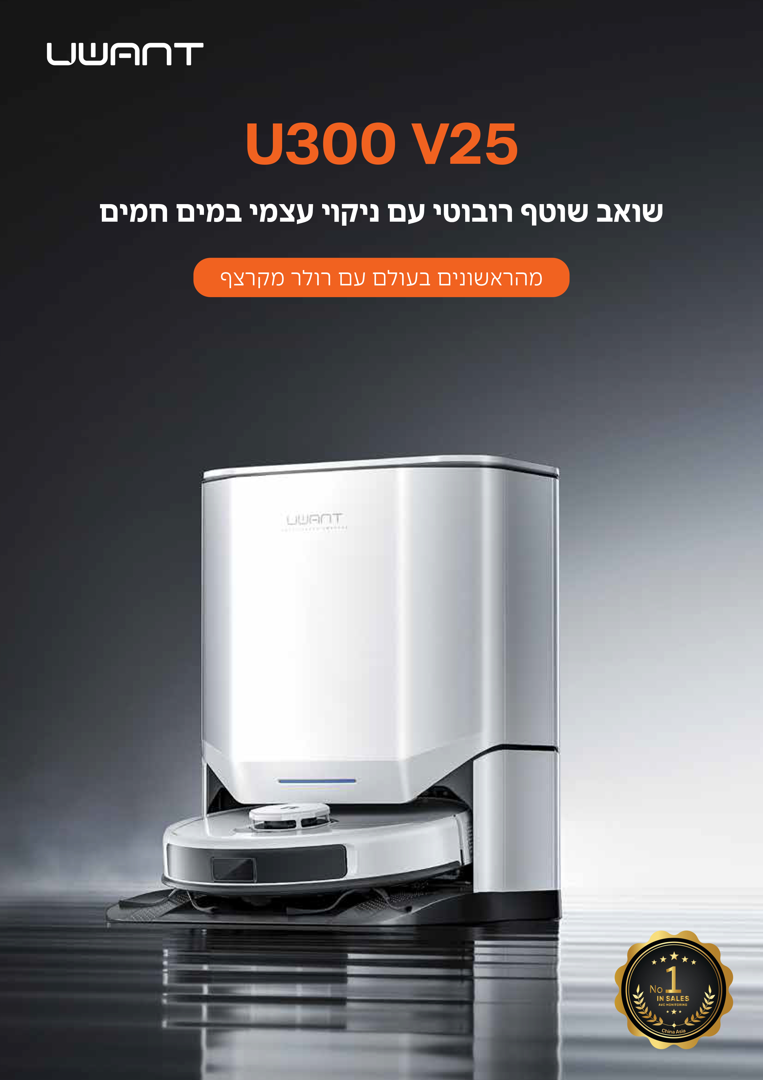 שואב שוטף רובוטי עם עמדת ריקון עצמתית ומהראשונים בעולם עם רולר מקרצף!