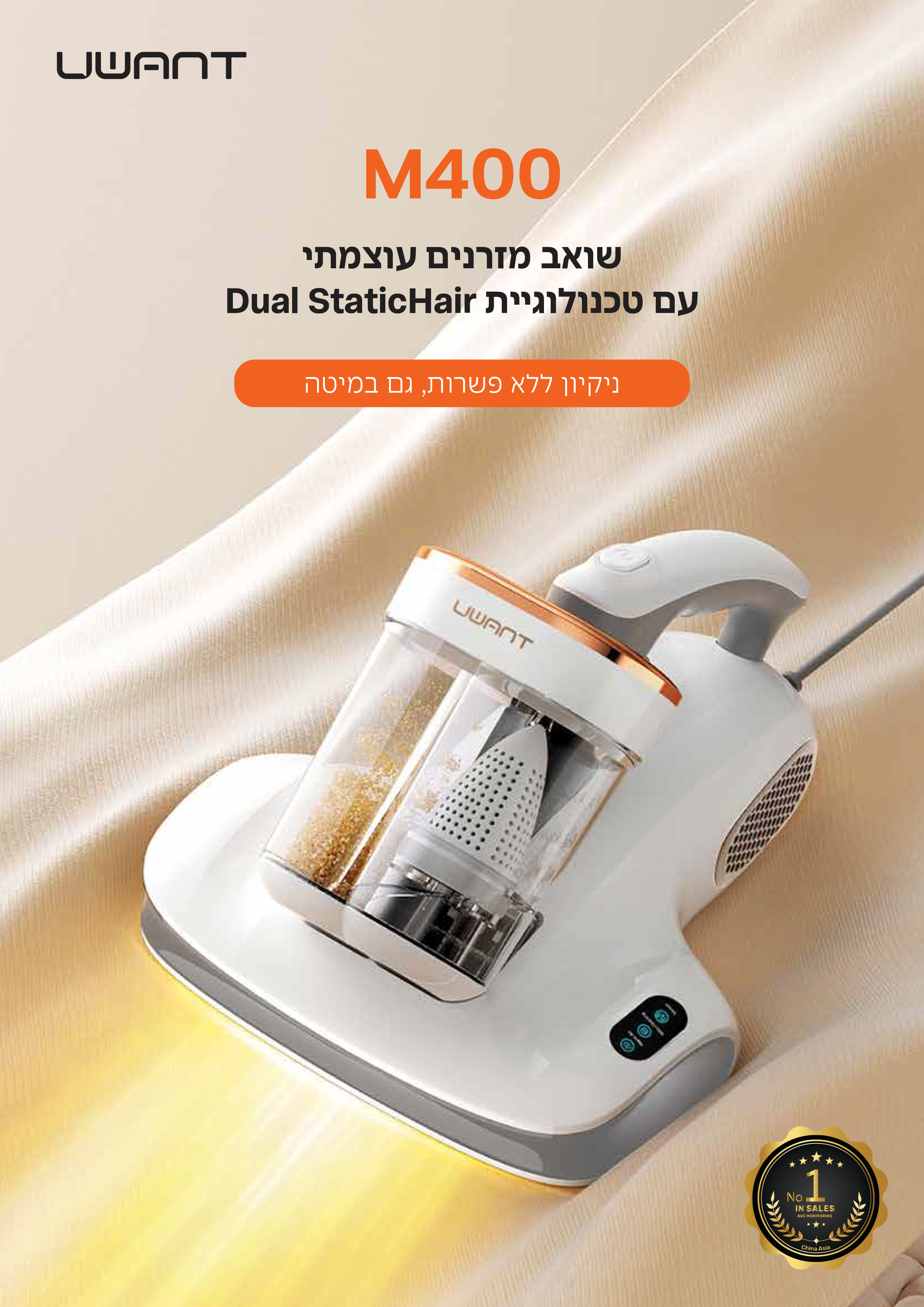 שואב המזרנים 400M UWANT משלב טכנולוגיות פורצות דרך לניקוי וחיטוי עמוק של מצעים, מזרנים ובדים רכים.
