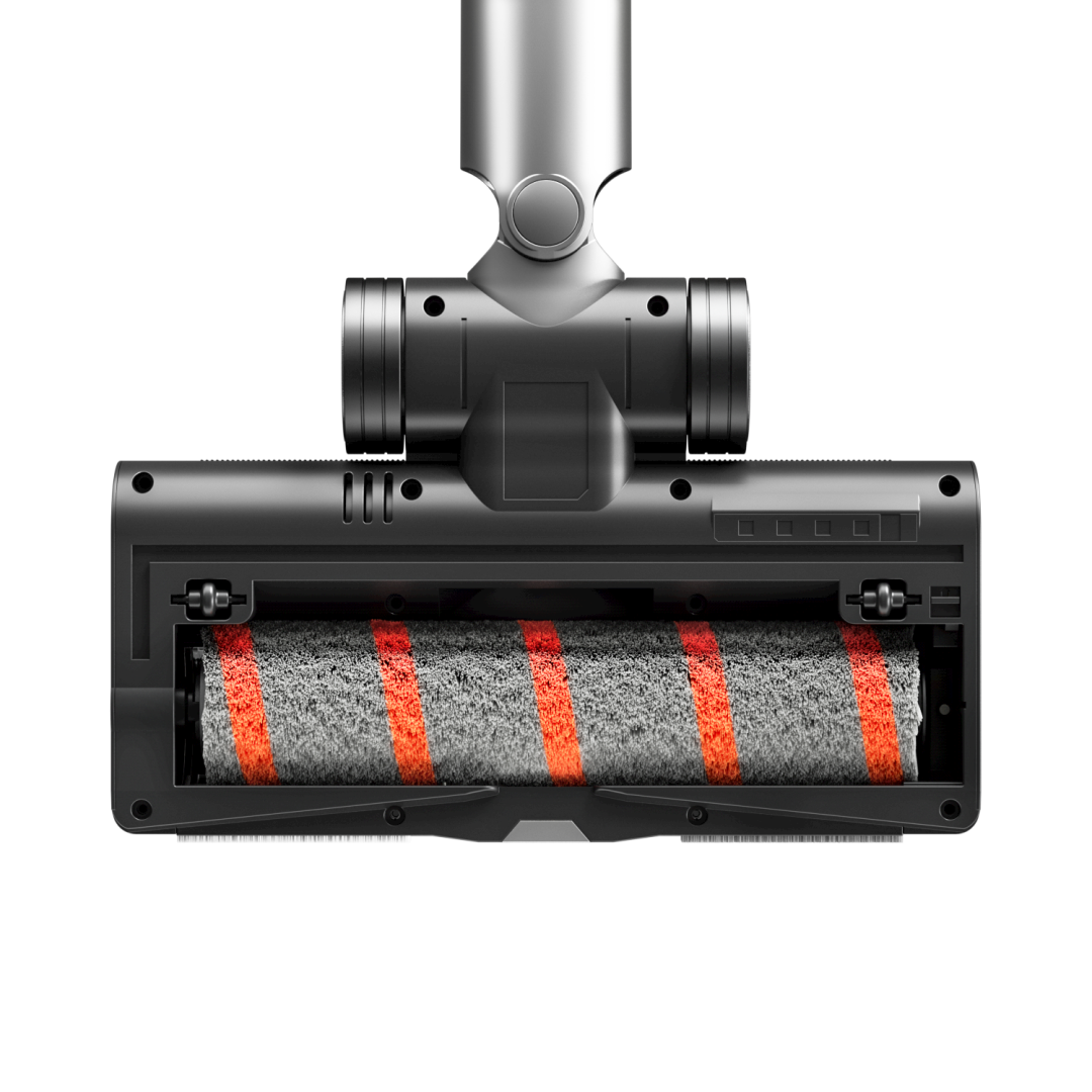 מבנה ייחודי של המברשת: המברשת הראשית נראית כרולר המשלב בין זיפים רכים (בדרך כלל סיבים דמויי קטיפה) לבין רצועות נוקשות יותר או חוטים אדומים, מה שמאפשר לה לאסוף ביעילות גם אבק דק (מהסיבים הרכים) וגם לכלוך גס יותר (מהרצועות האדומות) על רצפות קשות ורכות כאחד.